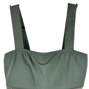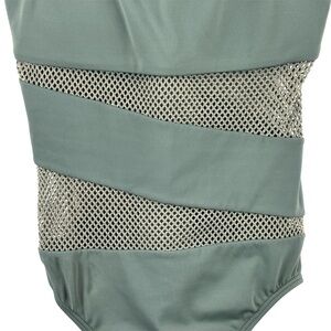 Carmen Marc Valvo One piece Olive Green Mesh Stripe panels Size 6 Summer Beach