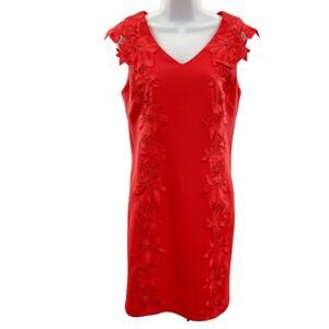 Carmen Marc Valvo Orange Lace Applique Cap Sleeve Sheath Work Party Dress Size 6