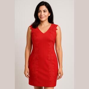 Carmen Marc Valvo Orange Lace Applique Cap Sleeve Sheath Work Party Dress