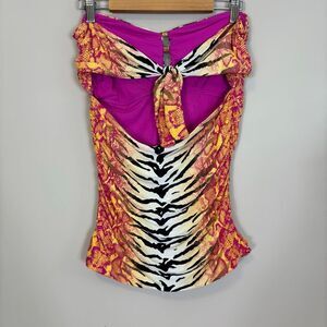 Great pre-owned condition Carmen Marc Valvo Orange with Pink Snakeskin and Black & White Zebra Tankini Swimsuit Top Size Large