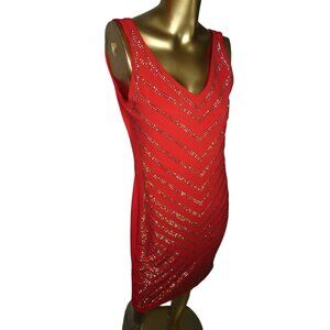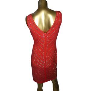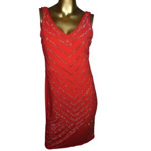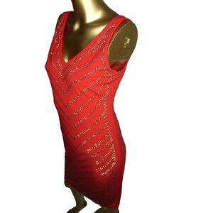 Carmen Marc Valvo Red Gold Studded Evening Cocktail Dress