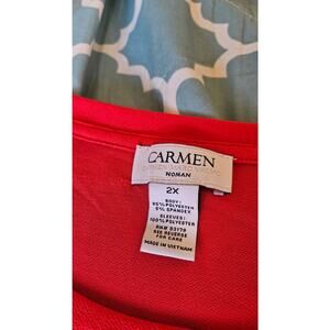 Carmen Marc Valvo Red Short Sleeve Women’s 2X Textured Sleeves Stretchy Blouse