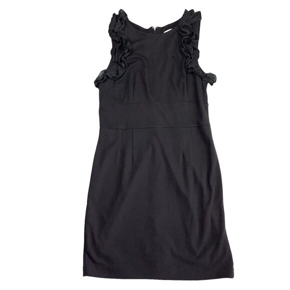 Carmen Marc Valvo Roma Midi Dress Women's 10 Sheath Ruffle Sleeveless Stretch