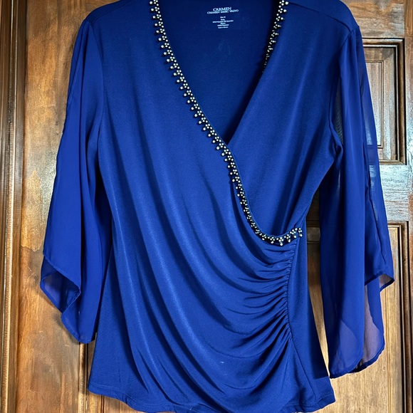 Carmen Marc Valvo Royal Blue Beaded Blouse
