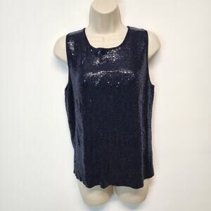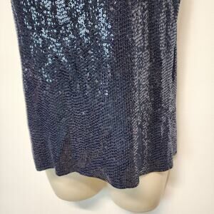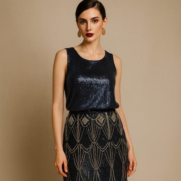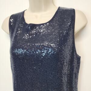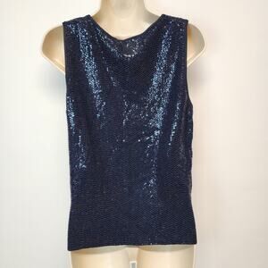 Carmen Marc Valvo Sequin Top Size M Blue Sleeveless Round Neck Evening Art Deco