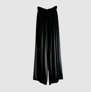 Carmen Marc Valvo Silk High Rise Wide Leg Black Lined Pants