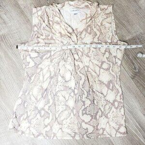 Carmen Marc Valvo Sleeveless Snake Print Blouse Size M Beige/Brown