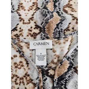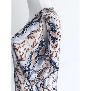 Carmen Marc Valvo Size S Beige Snakeskin Print Top Dolman Cold Shoulder Pullover