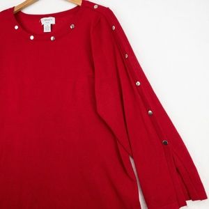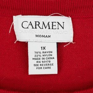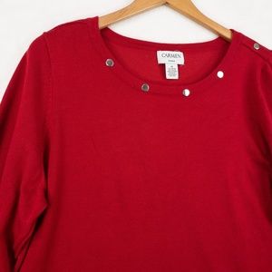 Carmen Marc Valvo Sweater Woman 1X Red Silver Studs 3/4 Slit Sleeve