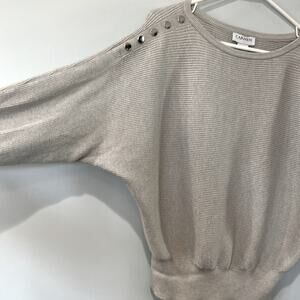 Carmen Marc Valvo batwing sleeve sweater women's size large. Faux sliver button accent.