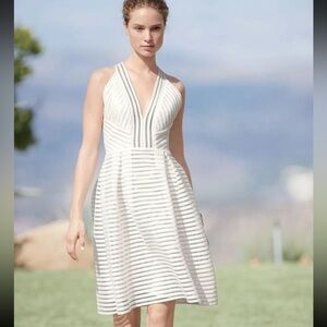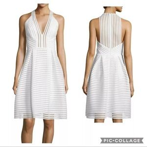 Carmen Marc Valvo Textured Stripes A-Line White Mini Dress Sz 2 coquette fairy