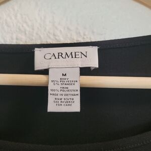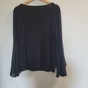 Carmen Marc Valvo Top Women's M Black Bell Sleeve Tunic Career Wear Pullover