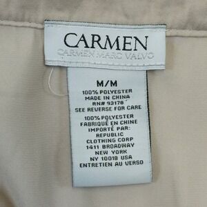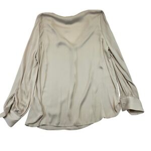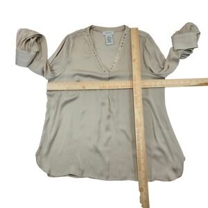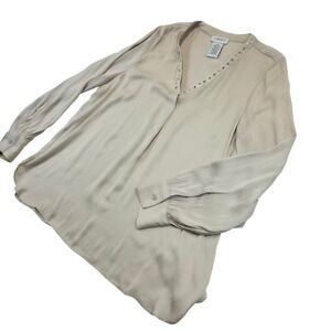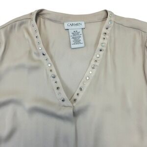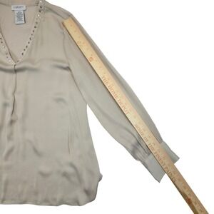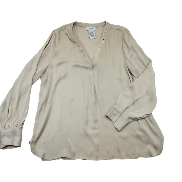 Carmen Marc Valvo V Neck Embellished Long Sleeve Blouse Top M M Beige Polyester