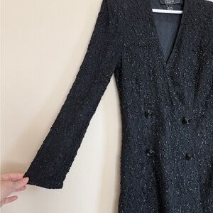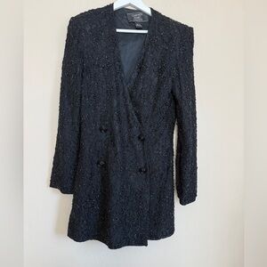 This gorgeous vintage double breasted blazer dress. Intricate lace and beaded detail make this dress perfect for any upscale event where you need a piece to stand out! Has shoulder pads and snap closures throughout the front of the dress.