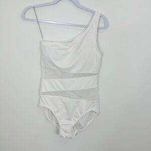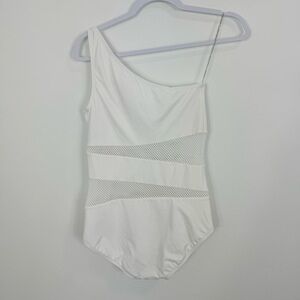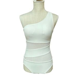 Carmen Marc Valvo White Mesh Panel One Shoulder One Piece Swimsuit Size 10