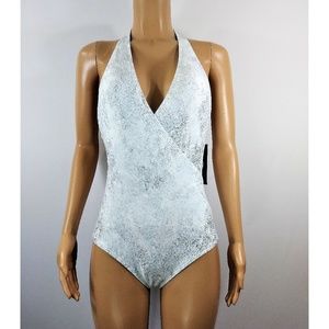 Carmen Marc Valvo White & Silver 1PC Swimsuit with Open Back