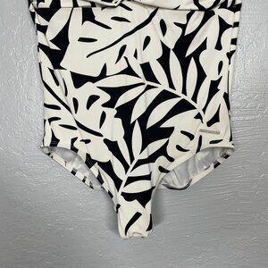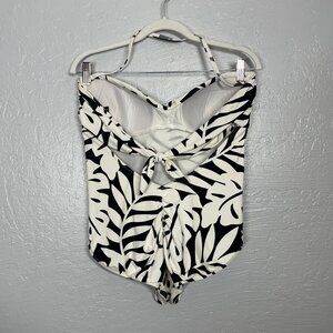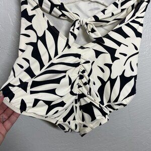 Carmen Marc Valvo Women 14 Black White Floral One Piece Swimsuit Halter Tie Back