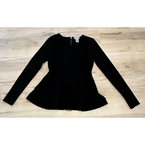 Carmen Marc Valvo Women XS Blouse Peplum Back Zipper Long Sleeve Black