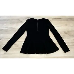 Carmen Marc Valvo Women XS Blouse Peplum Back Zipper Long Sleeve Black