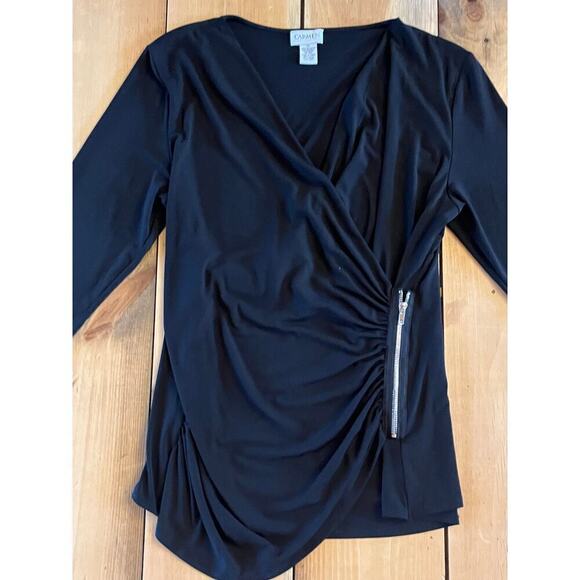 Carmen Marc Valvo Women's Black Rushed Zipper Detail Blouse.Top. Size XL