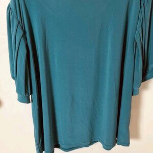 Brand-new Carmen Marc Valvo women’s blouse in a beautiful green (verdigris) — size 3X and new with tags (NWT)! This stylish top features a flattering scoop neckline, soft polyester-blend knit fabric, and balloon sleeves that add a boho-chic vibe perfect for casual days, travel, work, or weekend outings.