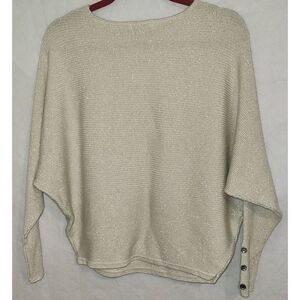 Carmen Marc Valvo Womens Ivory/Soft Gold Lurex Metallic Pullover Sweater NWT Size Medium Dolman Sleeves.