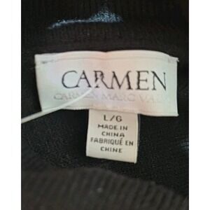 The Carmen Marc Valvo Women's L Black Turtleneck Fringe Hem Sweater is a stylish and versatile piece perfect for various occasions.