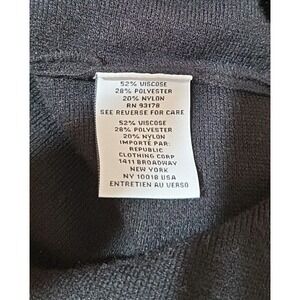 Made from a blend of polyester, nylon, and viscose, this tight-knit sweater features a solid black color with a unique fringe accent at the hem.