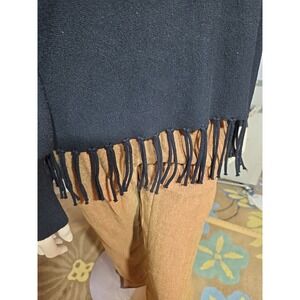 Carmen Marc Valvo Women's L Black Turtleneck Fringe Hem Sweater Western Boho