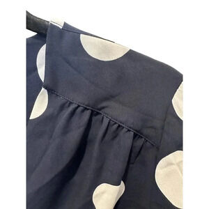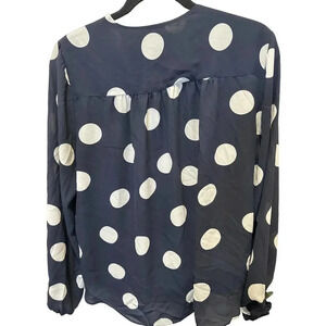 Carmen Marc Valvo Women's Navy Blue Long Sleeves Polka Dot Blouse Size Large