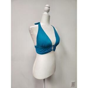 Carmen Marc Valvo Women's Ring Front Halter Bikini Top Turquoise Large