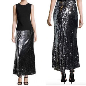 Carmen Marc Valvo Women's Silver all over sequin Midi Skirt Size 6
