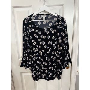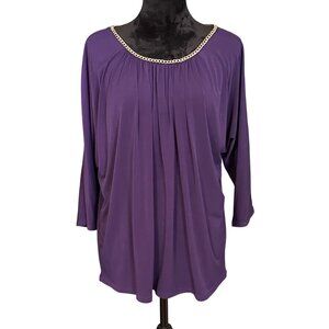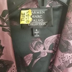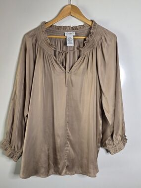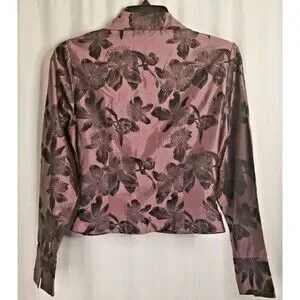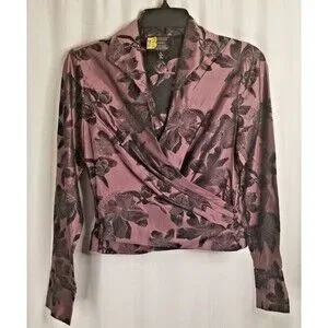 Carmen Marc Valvo Women's Top Faux Wrap V-Neck Silk Blend Long Sleeve Size 4