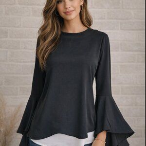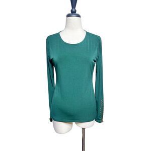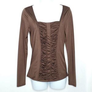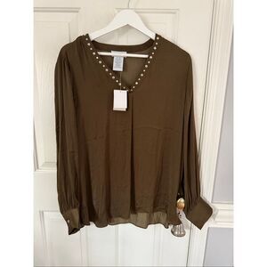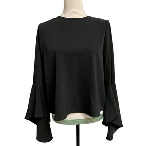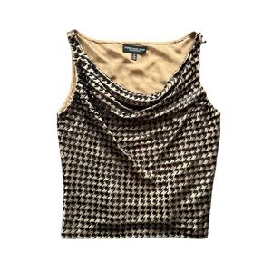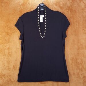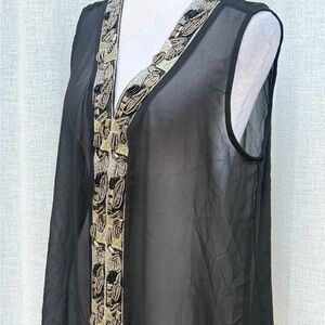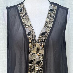 For sale is a beautiful Carmen Marc Valvo black sheer sleeveless blouse with silver gold front beads.