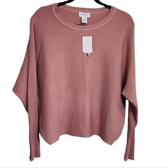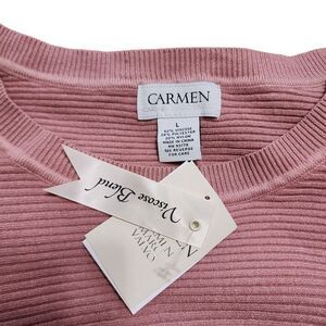 Carmen Marc Valvo pink ribbed long sleeve boxy top L NWT