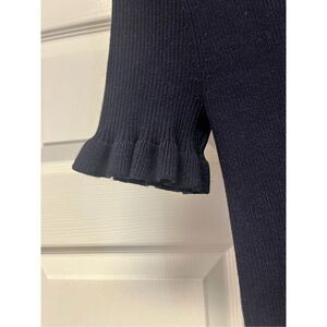 Carmen Marc Valvo Black Ribbed Short Sleeve Flutter Sleeve Sweater sz M EUC