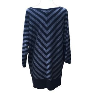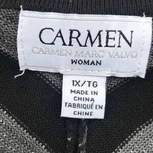 Carmen Marc Valvo Women's Black & Silver Metallic Chevron Long Sleeve Sweater 1X