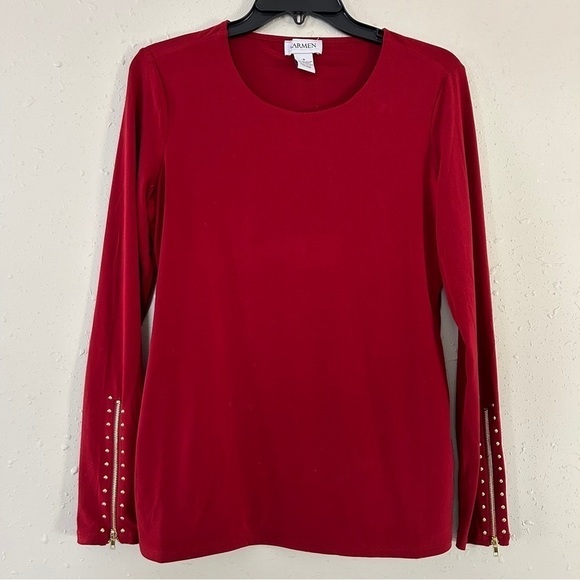 ๐ฆ Carmen Marc Volvo Red Gold Detail Long Sleeve Blouse Small Medium Stretch