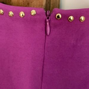 Fully lined. Super soft. Fits very well-doesn’t cling at all. Gold studs. Back zip. Good for casual or dressy