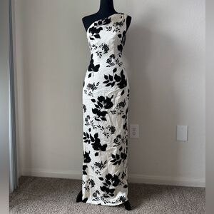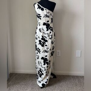 Carmen Marc Valvo 100% Silk One Shoulder Floral Maxi Dress Women’s Sz 8 Formal