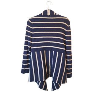 Carmen Marc Valvo Women's Navy Blue And Cream Striped Cardigan Size S
