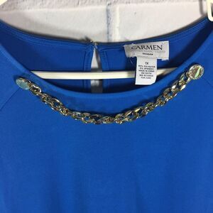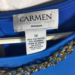 Carmen Marc Valvo Womens Blue Sleeveless Shirt 1X Top Blouse Gold Chain NEW with tags - Retail price $58.00