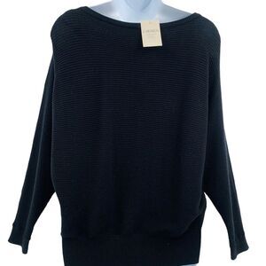 Carmen Marco Valvo Ribbed Dolman Sleeve Silver Hardware Pullover Sweater