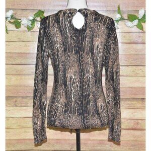 Carmen Mark Valvo Cheetah Animal Print Thin Knit Sweater Beaded Neckline Size S