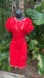 This pretty dress is a very stretchy cotton spandex blend. It has been over beaded with a paisley design in red glass, beating and silver and red sequins. I’m not sure if the sequence are supposed to be all red and some of it rubbed off anyways it’s a pretty effect. There area few beads missing under the arm and possibly randomly and other places, but nothing that is apparent to the eye in excellent condition