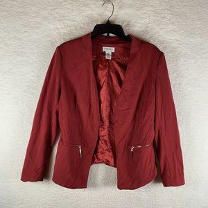 Carmen Milano Blazer Women's 8 Red Rayon Stretch Long Sleeve Lapelless 6590