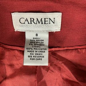 Carmen Milano Blazer Women's 8 Red Rayon Stretch Long Sleeve Lapelless 6590.