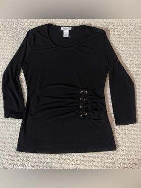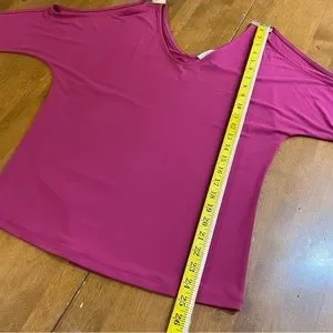 Carmen Raspberry Purple V Neck Cold Shoulder Hardware Shirt Top Blouse Sz M