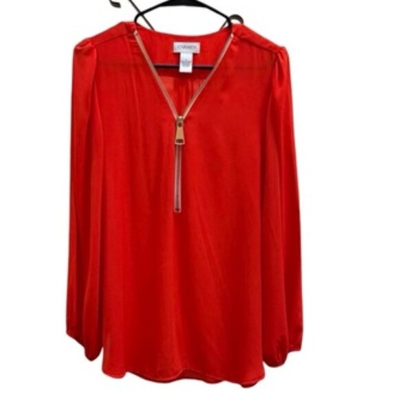 π₯ Carmen Red Zip-Front Blouse β Size M