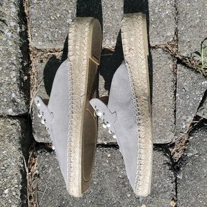 Carmen Saiz Suede Embellished Espadrille Slip On Shoes Flats Gray Size 39. Made in Spain.